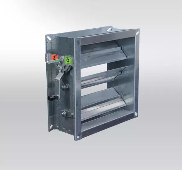 RKM – Регулировочная заслонка используется для регулирования воздушного потока в прямоугольном трубопроводе путем дросселирования поперечного сечения встречными пластинами. Клапан не классифицирован как воздухонепроницаемый.