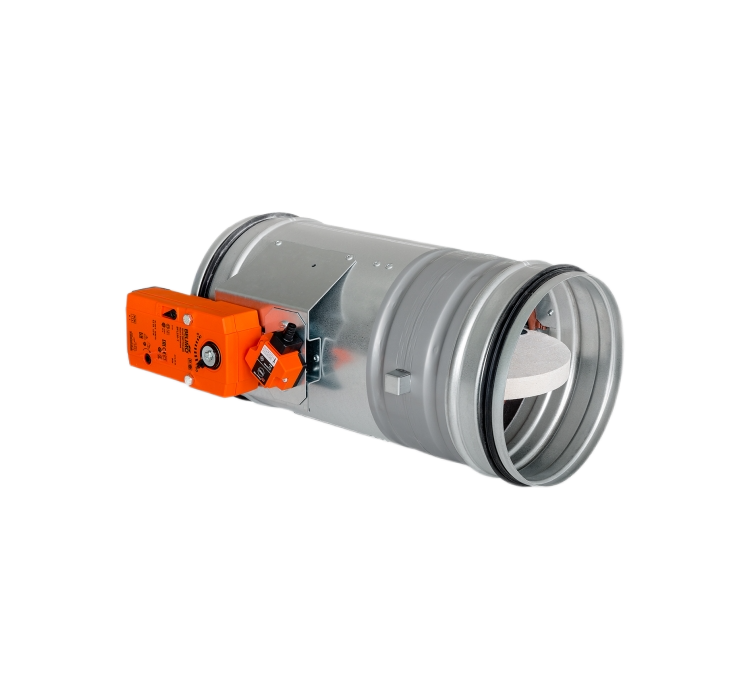 FDMR – Демпфер в воздуховоде климатического оборудования, препятствующий распространению огня и продуктов горения из одного сегмента пожара в другой за счет перекрытия потока воздуха в точках крепления.